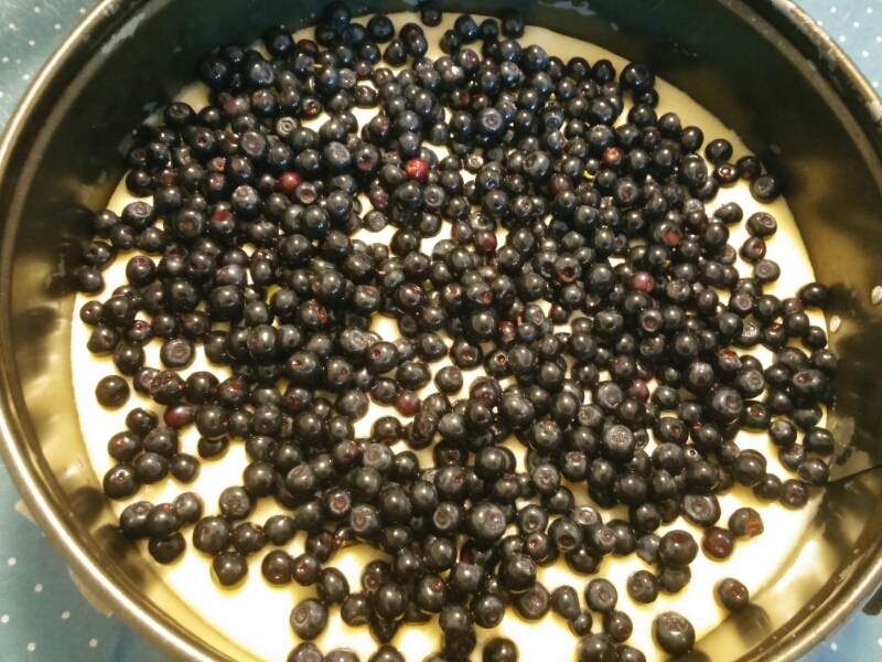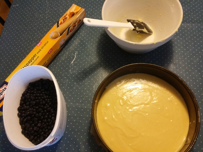 - Strö över blåbären och grädda på nedersta falsen ca 1 timme. Täck eventuellt med en plåt någon fals ovan efter 30-45 minuter om kakan fått tillräckligt med färg.