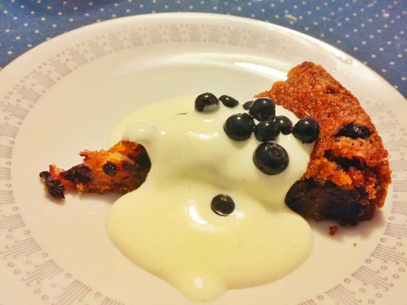 Så vad gör man med alla blåbär som inte blir sylt eller fryses ner? GÖR NÅT GOTT! Och det finns massor av godheter man kan göra med blåbär. Bullar, kakor, snittar, mousser, cheese cake m.m. Idag testar vi ett mellanting mellan blåbärspaj och -kaka. Den har en härligt seg konsistens och passar utmärkt till vaniljvisp, sås eller glass.