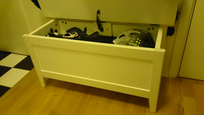 För dryga tre månader sedan köpte vi lite möbler och förstärkte förvaringsutrymmerna i barnens rum. Bland annat köpte vi en kista som vi tyckte extra mycket om och bestämde att vi skulle beställa en till och ha i hallen.